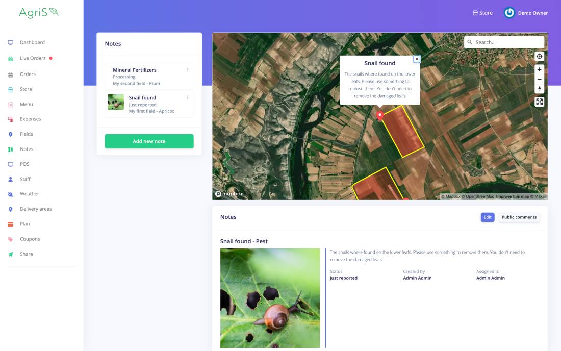 Add your fields on the map, and gain quick insides for current weather and pending tasks.